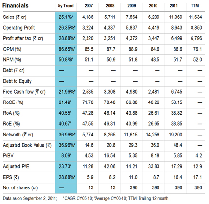 NMDC is a zero-debt company. Over a span of five years, the free cash flow of the company has increased at a compounded annual growth rate (CAGR) of 21.96 per cent. During this period it has delivered a five-year average return on capital employed of 61.49 per cent and return on net worth of 40.67 per cent.