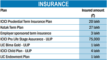 You have far too many insurance policies, which are a mix of pure risk cover (term insurance) and policies that double up as investment vehicles. You are paying a huge amount every year by way of insurance premiums. Keep your term insurance policies in place. As for the rest, evaluate all of them. Talk to your agent and see what the surrender or termination clauses are. This will free you of future financial commitments and you can safely divert the money towards other forms of investment and savings. We noticed that you do not have a medical insurance police. However, it is probably because your employer provides you with one.