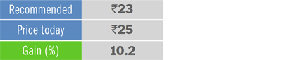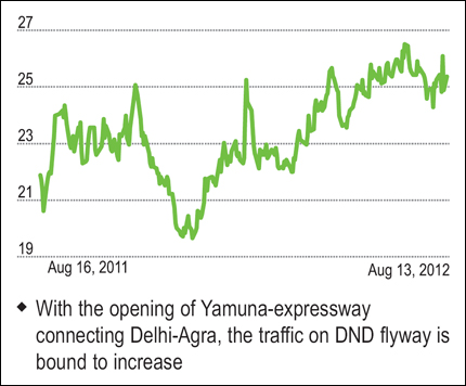 As the NCR has grown, so have the number of vehicles (17,000 vehicles per day in year 2000 to 1,02,394 vehicles per day now) on the DND flyway. A guaranteed IRR of 20 per cent is also encouraging. The recent toll hike of 10 per cent will also be reflected in this FY13 earnings; it is also expected to become debt free by the end of it, boosting EPS further. A dividend of Re 1 in FY12, which translates into a yield of 4 per cent, looks promising.