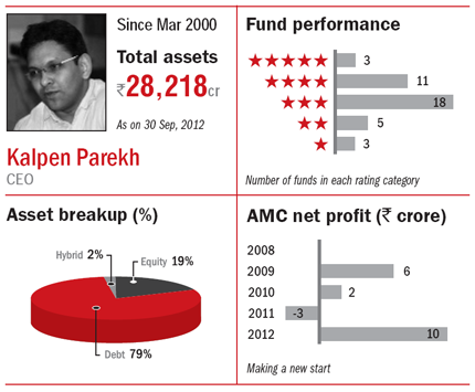It has had some unique funds in the form of a fund of funds which invests only in debt funds. Another first was the introduction of funds which sought to provide capital protection and stable returns. The fund house was also one of the first AMCs to offer same day redemption for cash funds and next day redemption for income funds. The AMC relies heavily on its star equity fund manager, who has adopted some new techniques that disciplines fund management, but also poses the risk of failing at the most awkward of times. The customer-centric approach, especially with its service has the potential to make this AMC an investor favourite.