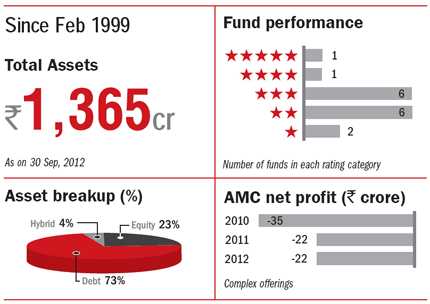 ING Mutual Fund started operations in 1999 as ING Vysya Mutual Fund which later underwent a change with the joint venture between Vysya Bank and the Dutch-based ING Group. From an also-ran entity for the first five years, the AMC got into expanding its offerings from 2004. It has a complete bouquet of schemes for both retail and institutional investors, but struggles on performance.