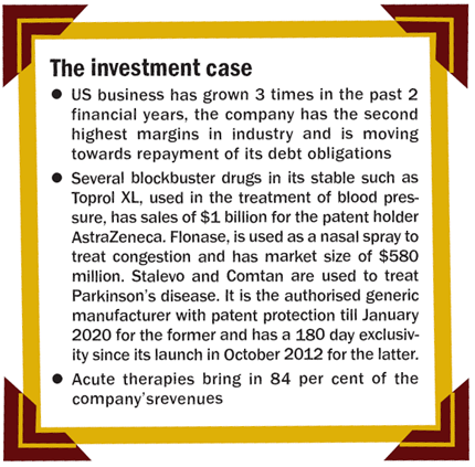 Wockhardt has a robust domestic presence, which brings in around 19 per cent of its total business and has been growing at 13 per cent CAGR over the last two years. It has a strong portfolio in respiratory and anti-diabetic drugs which contribute for 12 per cent and 9 per cent respectively. Wockhardt has also licensed around 20 products in oncology, dermatology and osteoarthritis with innovator companies in the US and Europe and should launch them here in the future. The company is one of the only two Indian firms besides Biocon to have its own insulin in the market under the brand of Wosulin. Though revenue growth is expected at around 12-13 per cent, the sale of its nutrition business, which was 22 per cent of Indian sales, can impact total growth of this segment.
