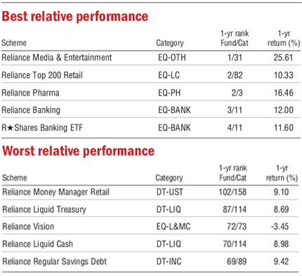 For an AMC with over 185 fund schemes across categories, it is natural to have funds with varied performance. A bulk of its debt funds have performed better than the median. However, the same cannot be said for the equity funds, even though Reliance Top 200 and Reliance Equity Opportunities are strong contenders in the broad diversified equity category among the top performers.