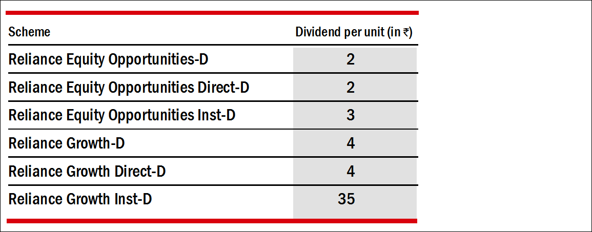 Reliance Mutual Fund has announced dividend under the following schemes: