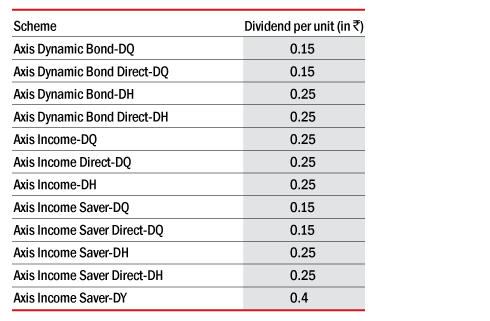 Axis Mutual Fund has announced dividend under the following schemes: