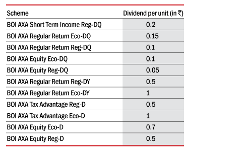 BOI AXA Mutual Fund has announced dividend under the following schemes:
