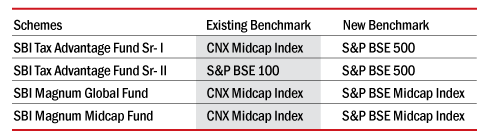 SBI Mutual Fund changed the benchmark of following schemes. The change will be effective from April 01, 2014.