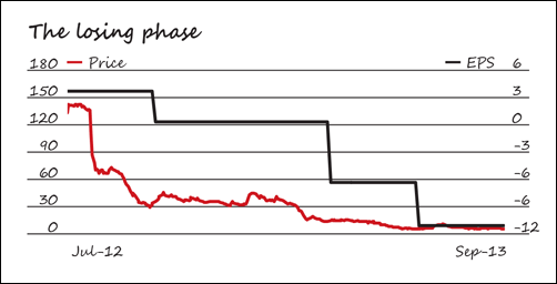 Thereafter the earnings and prices plunged down to almost nothing and the company went for liquidation in December 2013. The lesson learnt from this analysis was that just following the income statement without checking the balance sheet and cash flows can be injurious. Based on the same parameters is a list of companies which are somewhat following the same trail, which to say the least is alarming.