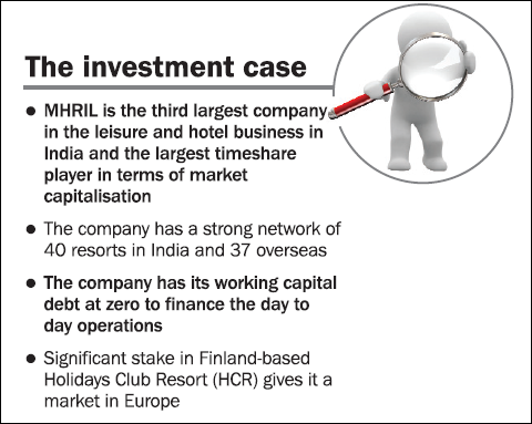 MHRIL is the third largest company in the leisure and hotel business in India. It is also the largest timeshare player in terms of market capitalisation and revenue among the listed companies in this space. Moreover, with its strong network of 40 resorts in India and 37 overseas; the company has a wide choice for customers to pick from. These factors make MHRIL preferred over other players in the segment, which was reflected in its occupancy ratio in the last quarter which stood at 88 per cent, which bodes a healthy sign.
