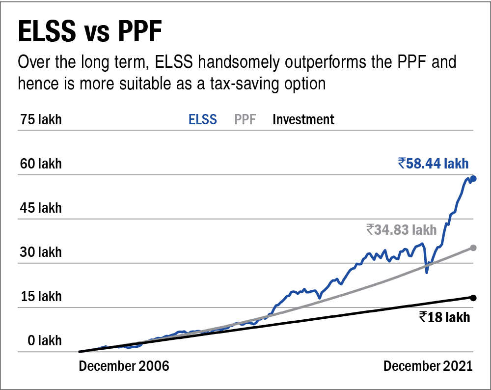 - While it is true that investments in the PPF up to Rs 1.5 lakh are exempt from income tax, Nishant could instead save tax by opting for a good equity-linked savings scheme (ELSS) or tax-saving fund. As against the PPF's lock-in period of 15 years, ELSS has a lock-in of only three years. This makes it more liquid and efficient.