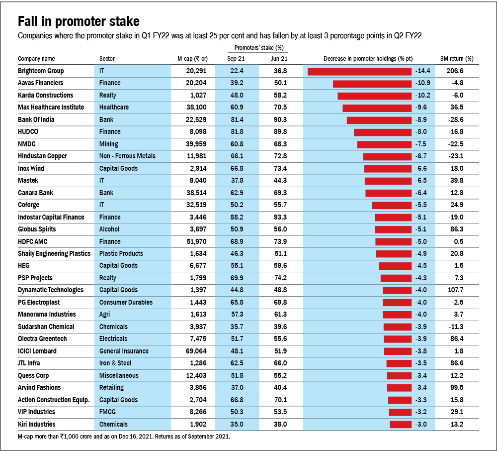Many investors track the change in promoter holding. A significant rise in promoter holding may mean that the promoter is bullish about his company. On the other hand, a significant fall in promoter stake is taken as a negative development. However, while tracking the change in promoter stake, one should also be mindful that promoter holdings can be impacted by corporate actions also. For instance, a rights issue, a merger, a reclassification of promoter can all cause the reported promoter holding to change. Hence, dig deeper into the following companies to make sense of the change in promoter stake.