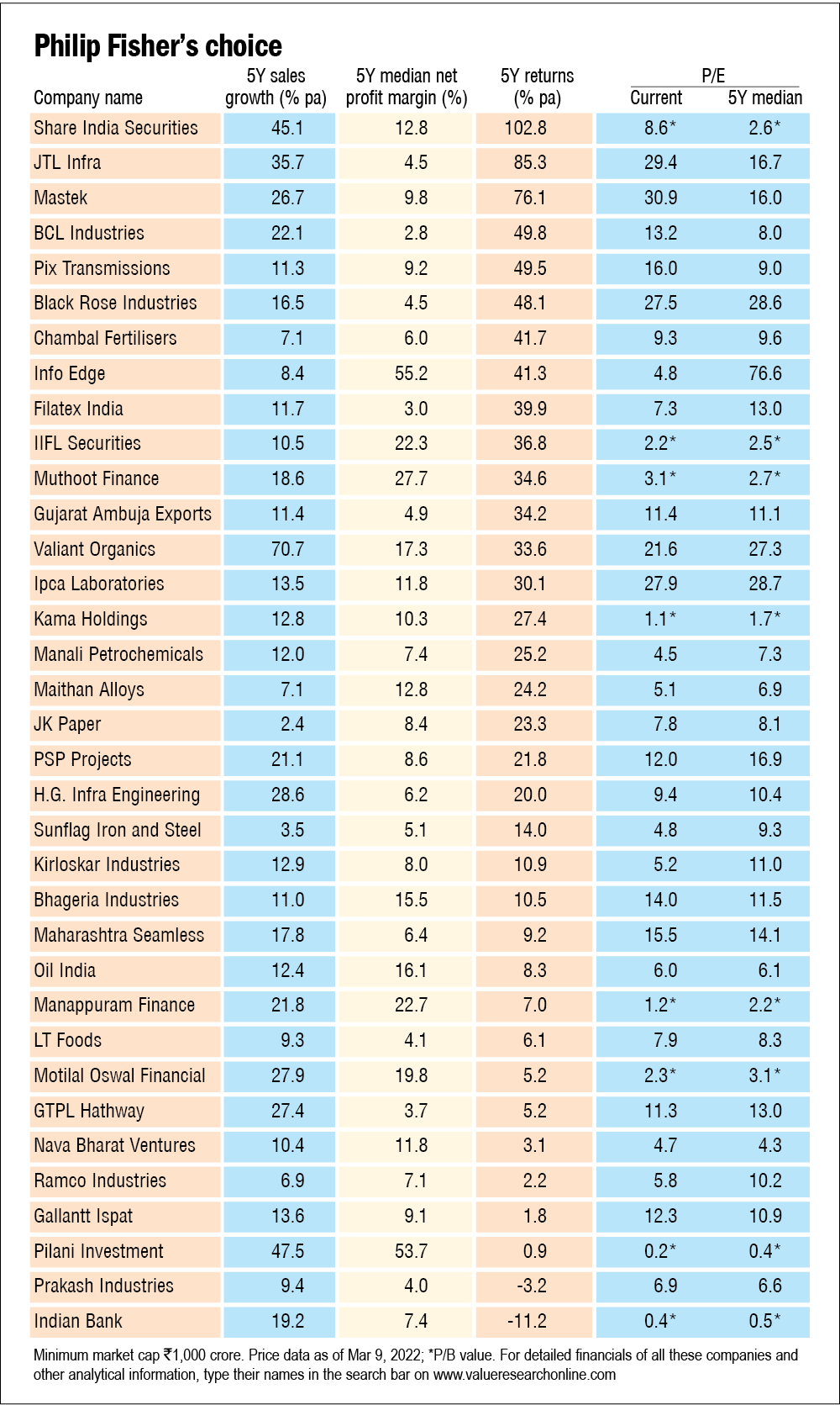 In order to get a list of Philip Fisher-type companies, we have applied the following quantitative filters: