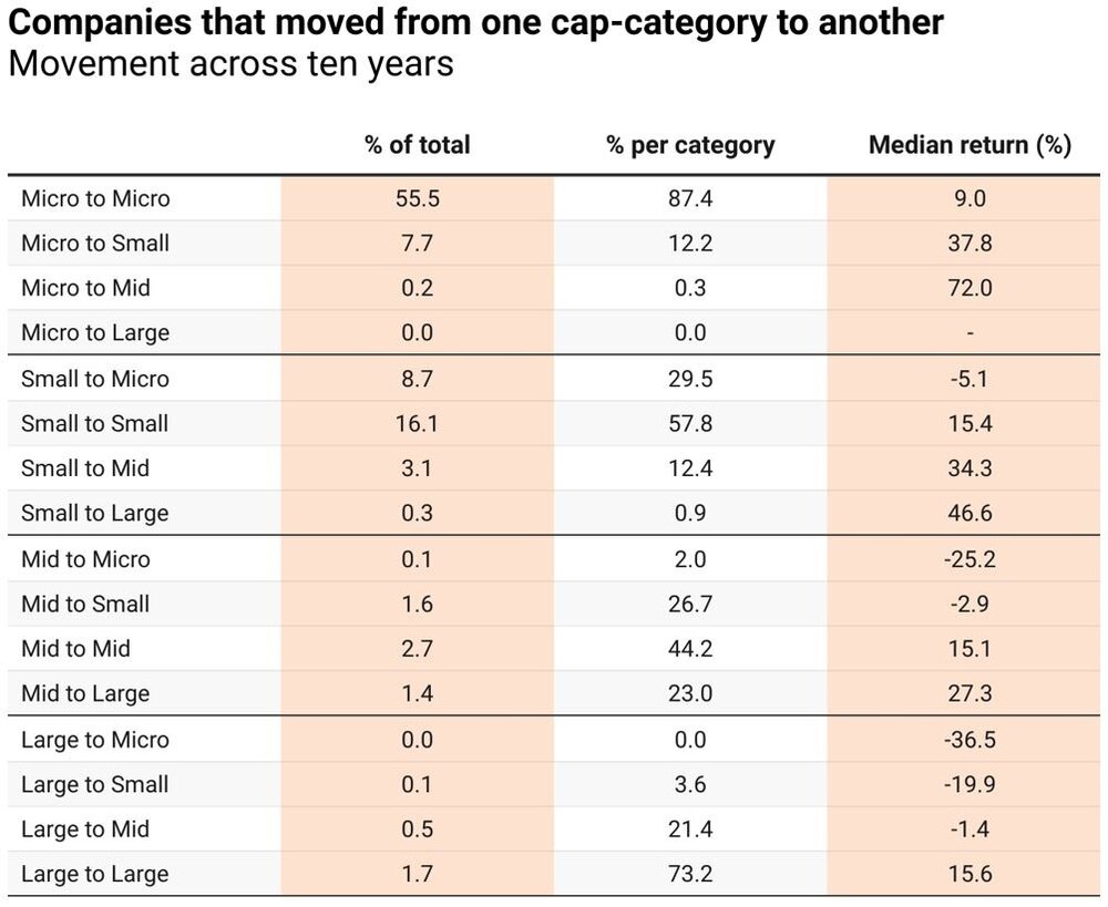 - Just because Mid to Large presents a higher probability of success with great returns, it is not the case that you should shun small-cap or large-cap companies.